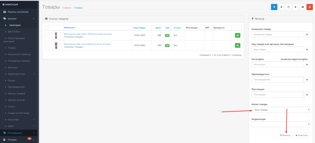 !Внимание!!! Перед созданием автотовара, необходимо убедится, что категория в которой он находится у поставщика, связана с категорией на нашем сайте. Также должен быть создан бренд. Иначе, товар создан не будет.