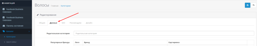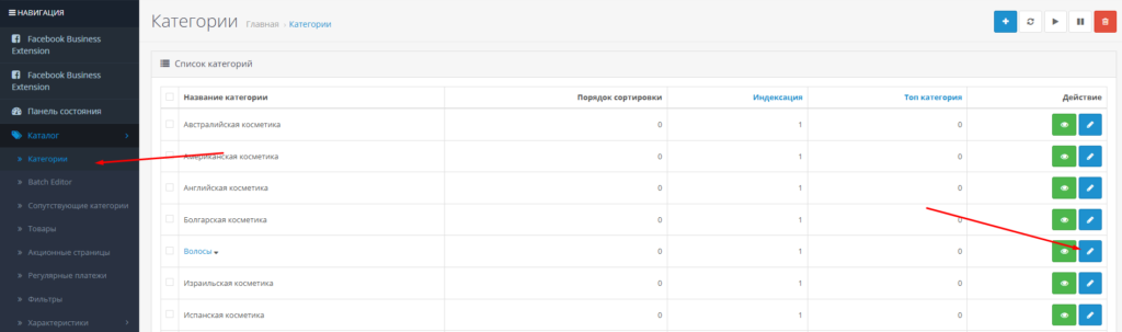 Чтобы отключить сортировку в категориях, переходим в меню Каталог -> Категории и переходим в редактирование категории