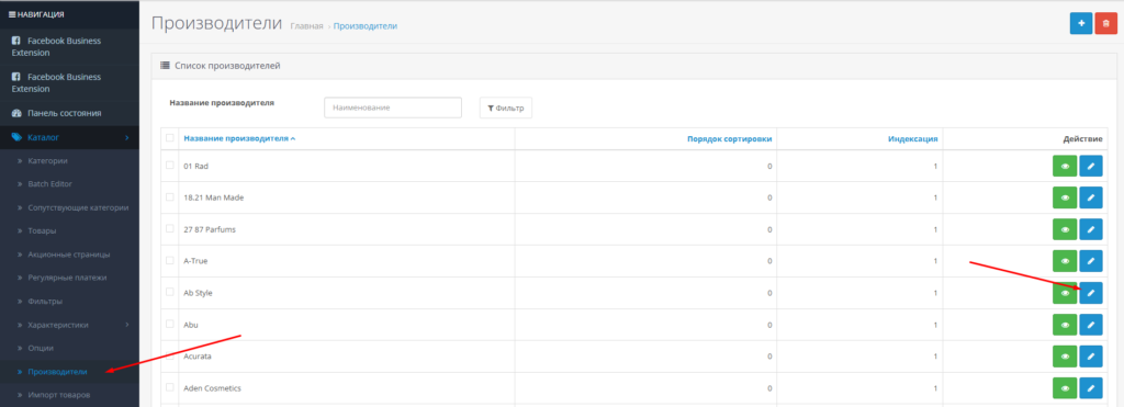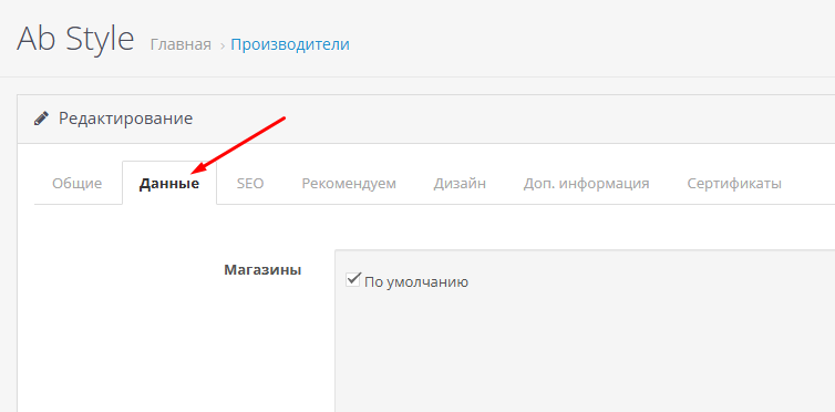 Чтобы отключить сортировку в брендах, переходим в меню Каталог -> Производители и переходим в редактирование категории