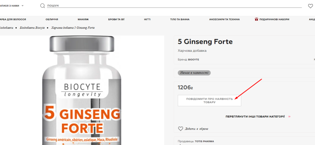 В карточке товара, которого нет в наличии, появилась кнопка «Сообщить о наличии»