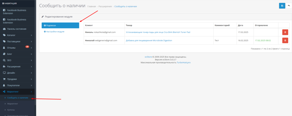 Тут же можно посмотреть уже отправленные товары и удалить товар из проверки на наличие