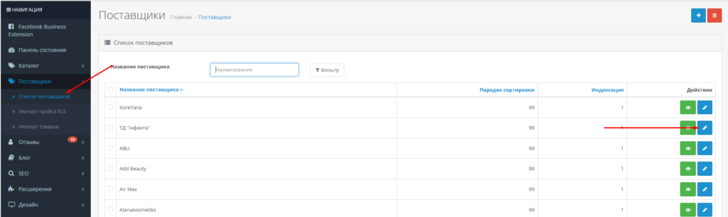В админ панели, во вкладке Поставщики, переходим в карточку нужного поставщика.