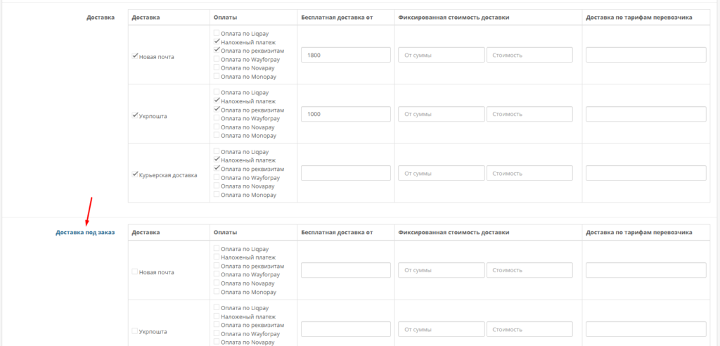 Настройка доставки и оплаты для товаров под заказ #
