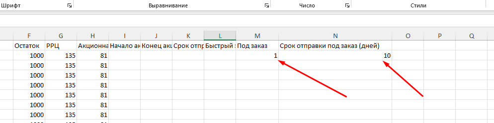 Для добавления товаров под заказ, продавцу необходимо заполнить соответствующие поля в файле обновления прайса.